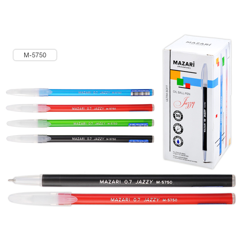 Ручка шариковая " Mazari " Jazzy, Ultra soft, синяя 0,7мм, игольчатый пишущий узел, чернила на масляной основе, пластиковый белый корпус, резиновый грип, сменный стержень 140мм, картонная упаковка