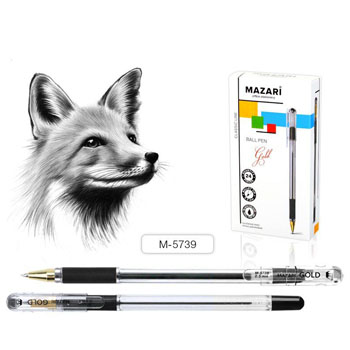 Ручка шариковая " Mazari " Gold черная 0,5мм, резиновый держатель, металлический наконечник, прозрачный корпус, картонная упаковка