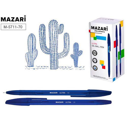 Ручка шариковая " Mazari " Ultra синяя 1,0мм, игольчатый пишущий узел, чернила на масляной основе, цветной корпус, сменный стержень 140мм, картонная упаковка