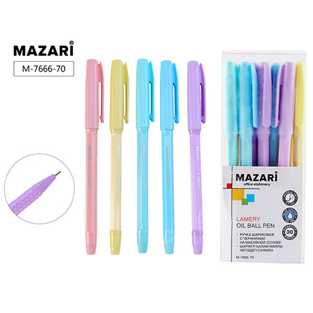 Ручка шариковая " Mazari " Lamery синяя 0,7мм, игольчатый пишуший узел, масляная основа, пластиковый цветной корпус, 5 дизайнов, сменный стержень 135мм, ПВХ-упаковка