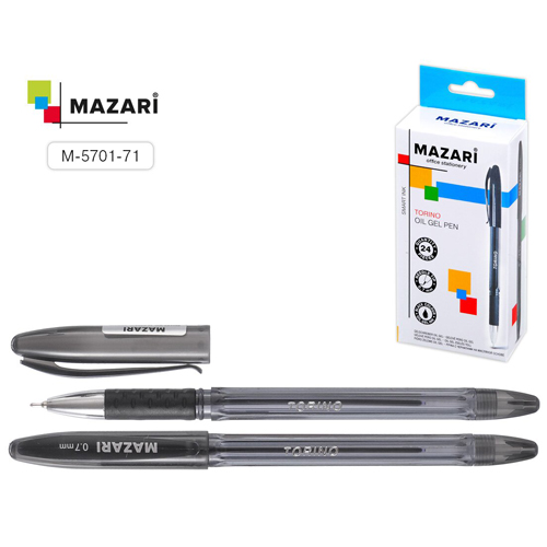 Ручка шариковая " Mazari " Torino черная 0,7мм резиновый держатель, игольчатый пишущий узел, чернила на масляной основе, цветной пластиковый корпус, картонная коробка с европодвесом