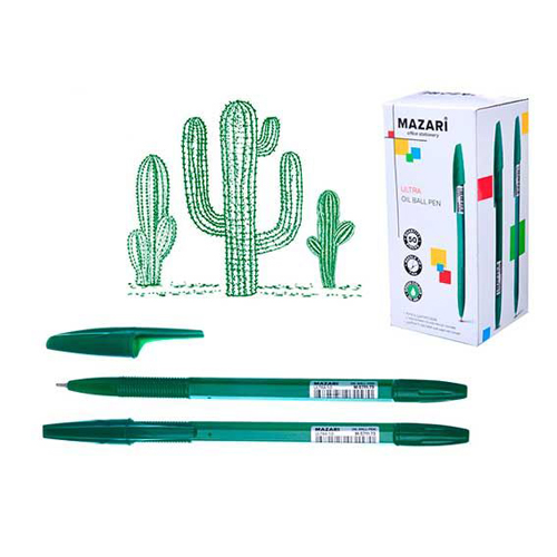 Ручка шариковая " Mazari " Ultra зеленая 1,0мм, игольчатый пишущий узел, чернила на масляной основе, цветной корпус, сменный стержень 140мм, картонная упаковка