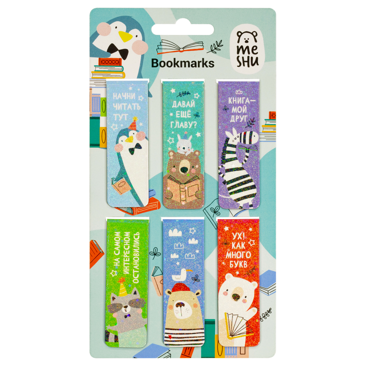 Закладки магнитные для книг, 6шт., MESHU "Book lovers", ламинация с блестками
