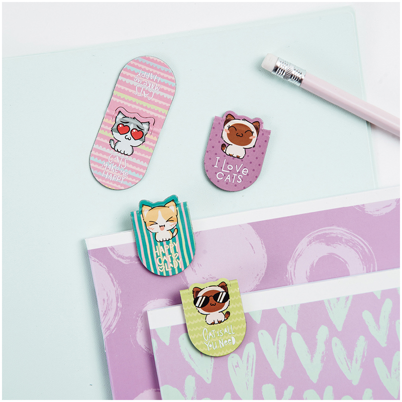 Закладки магнитные для книг, 4шт., 140*80мм, MESHU "Kittens"