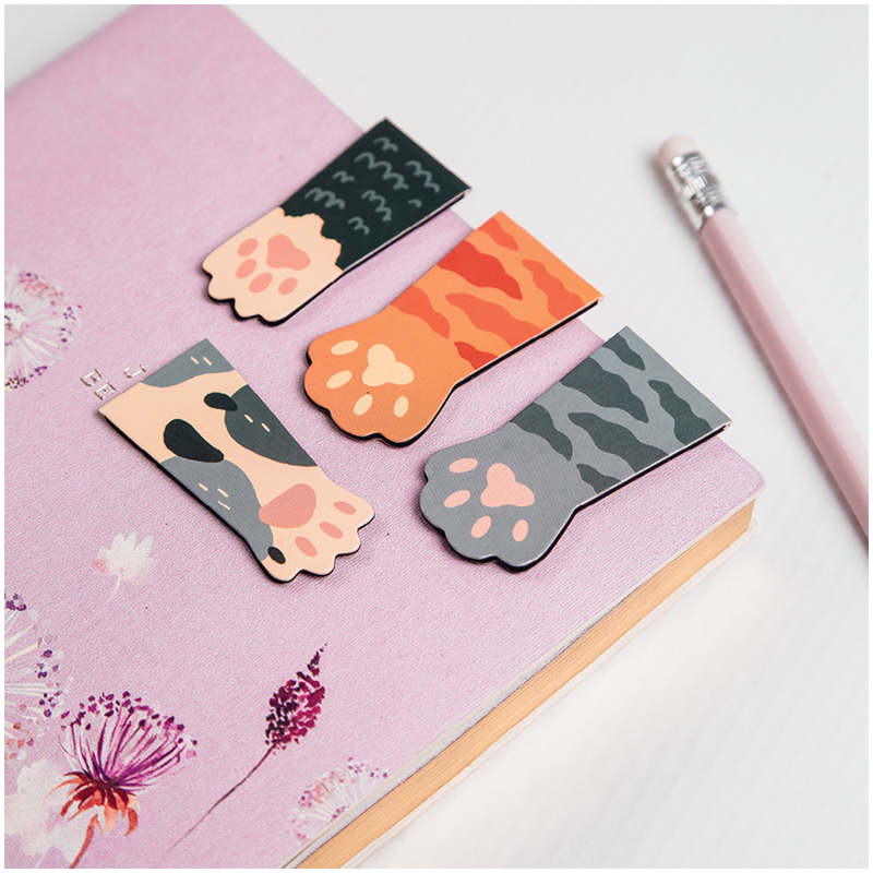Закладки магнитные для книг, 4шт., 140*80мм, MESHU "Cat paw"
