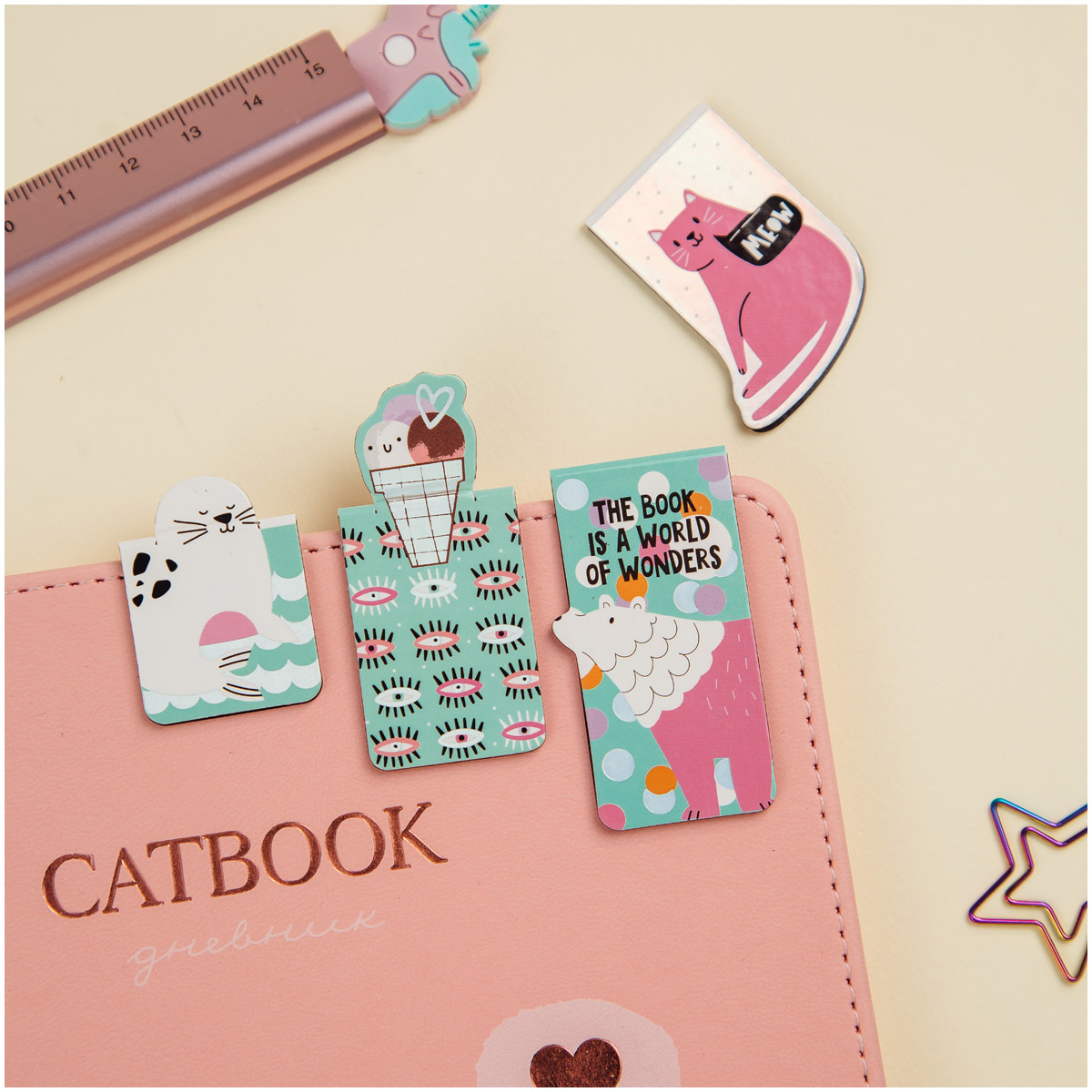 Закладки магнитные для книг, 3шт., MESHU "Cat lover"