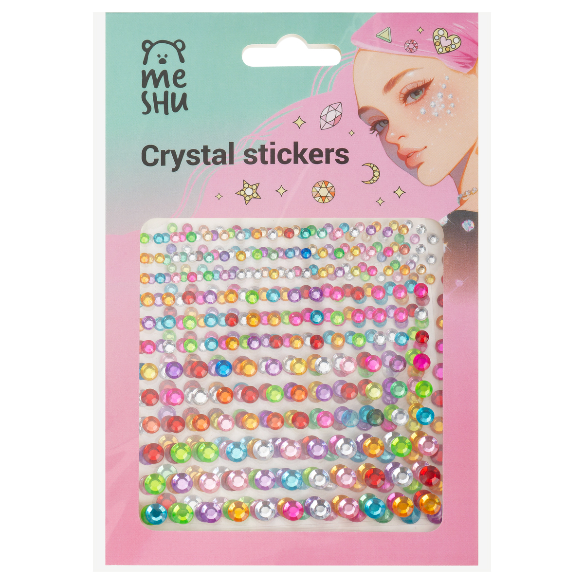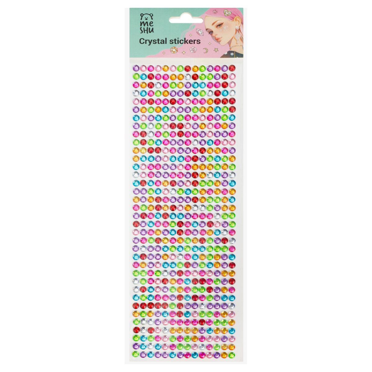 Стразы самоклеящиеся для творчества MESHU "Rainbow" 504 наклейки, инд. уп., европодвес