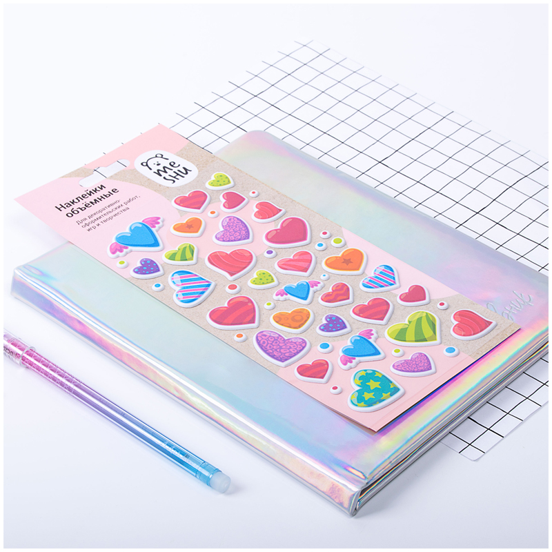 Наклейки объемные MESHU "Hearts", 10*19см, пакет, европодвес