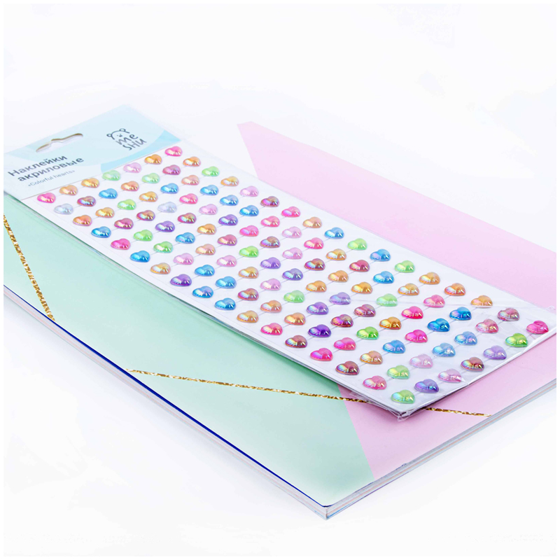 Наклейки акриловые MESHU "Colorful hearts", 10*32см, европодвес