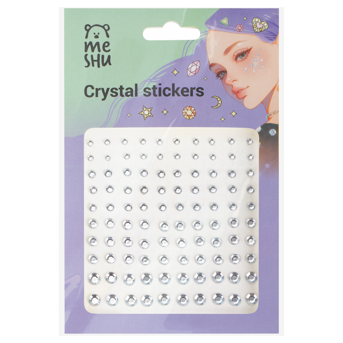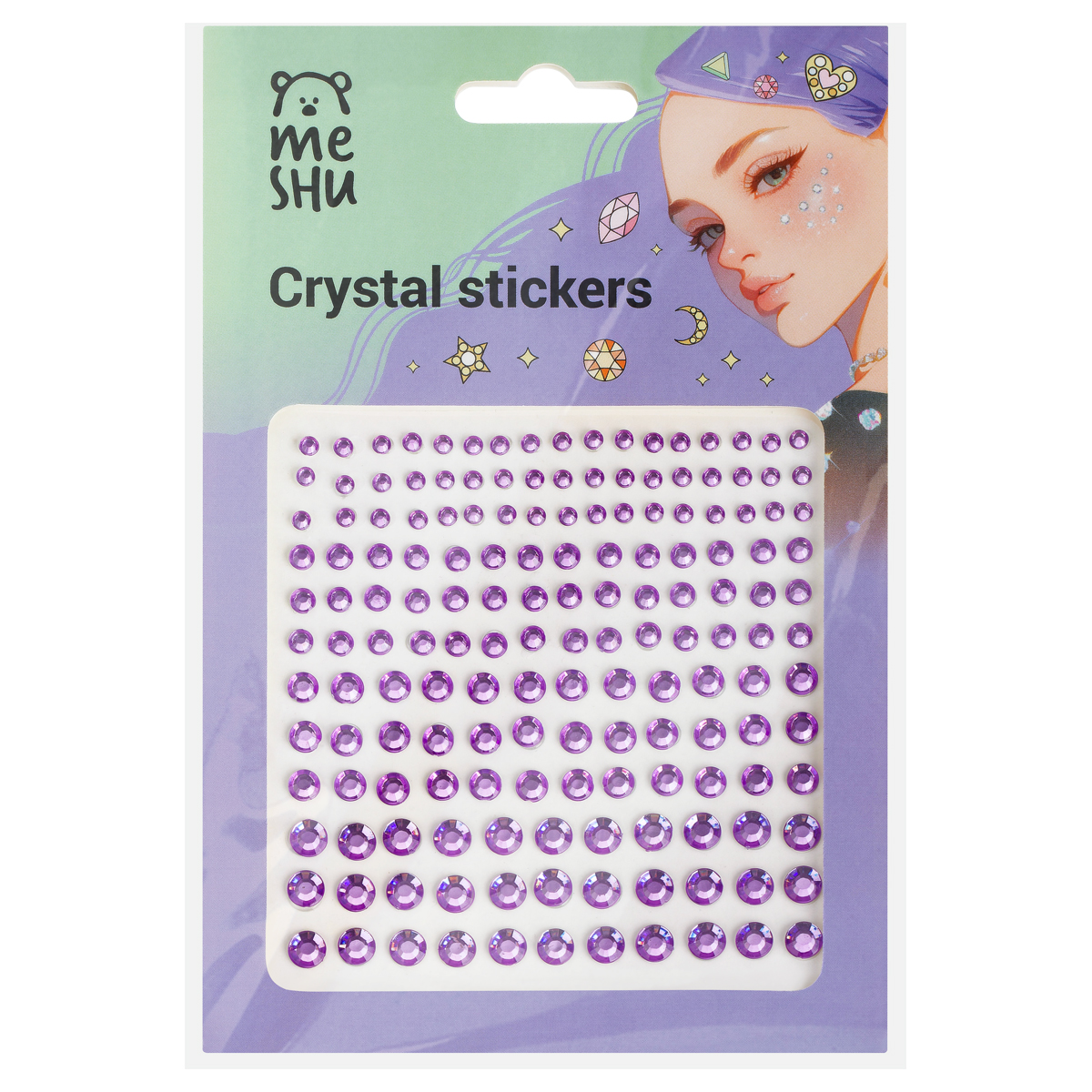 Стразы самоклеящиеся для макияжа лица MESHU "Purple drops" 162 наклейки, инд. уп., европодвес