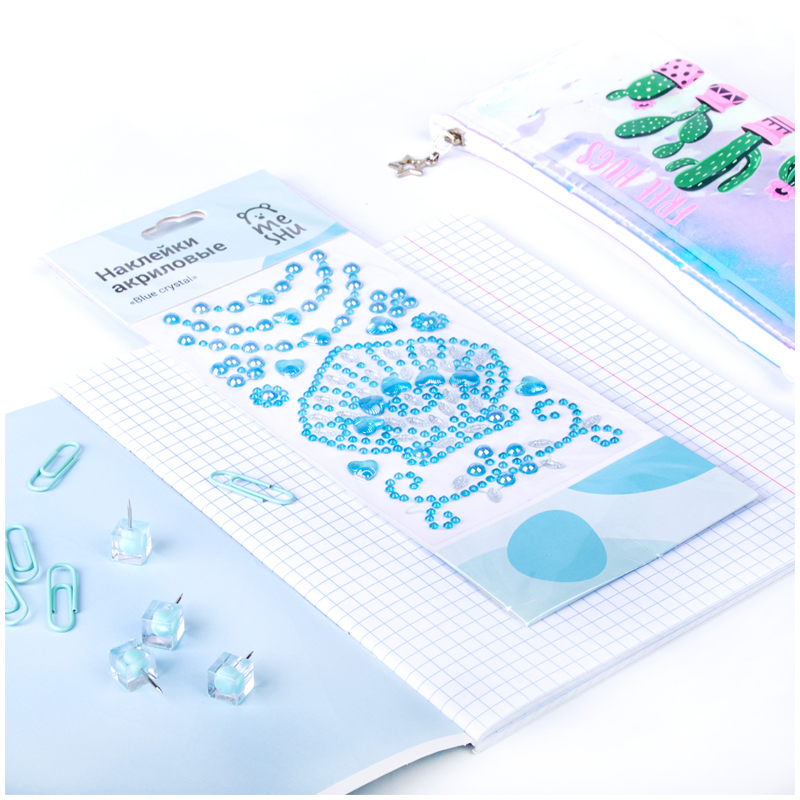 Наклейки акриловые MESHU "Blue crystal", 10*24см, европодвес