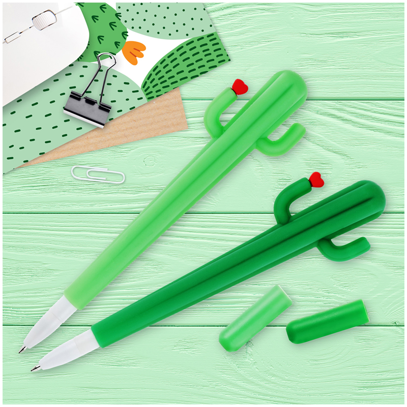 Ручка шариковая MESHU "Cactus" синяя, 0,7мм, софтач, ассорти