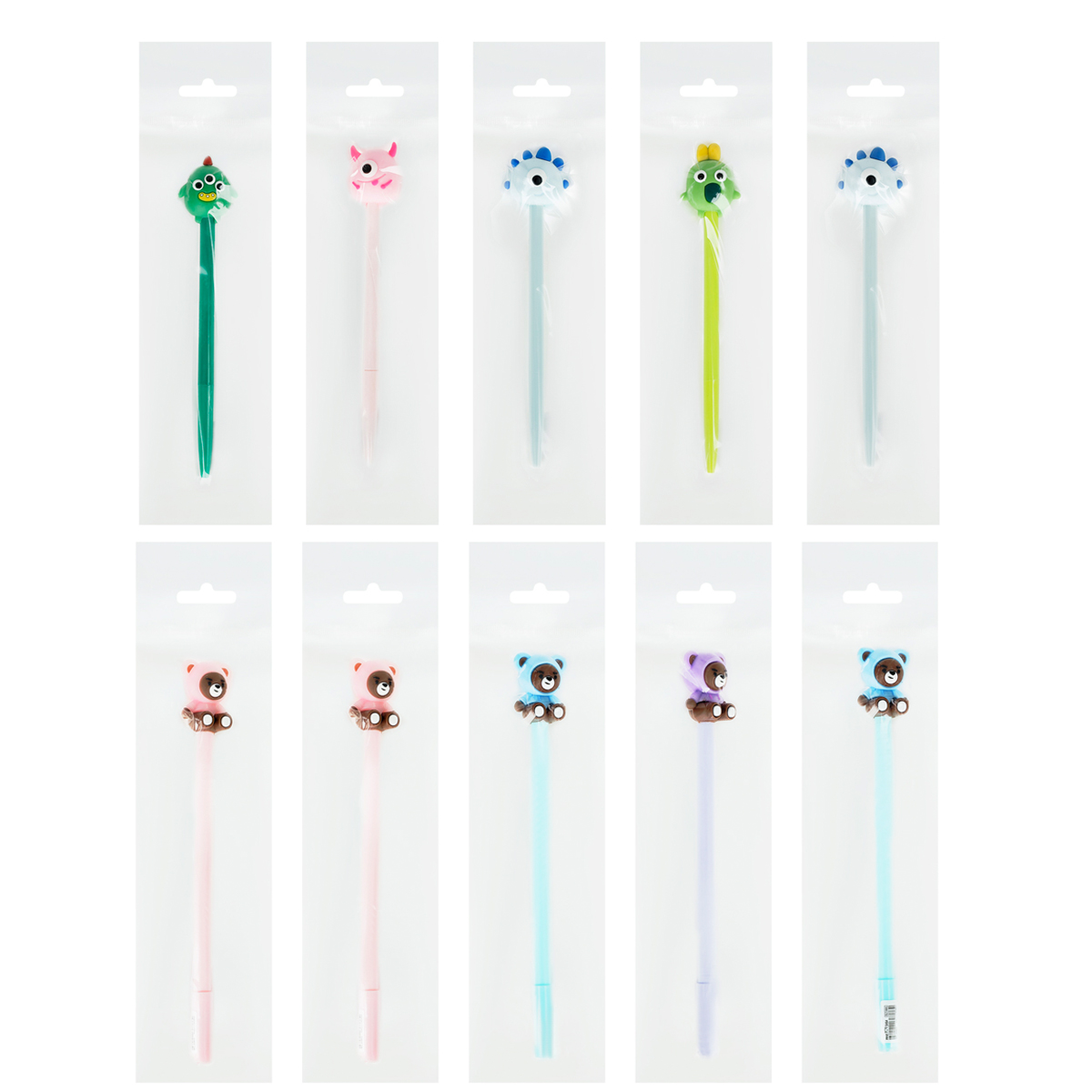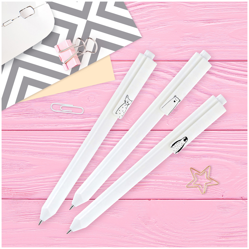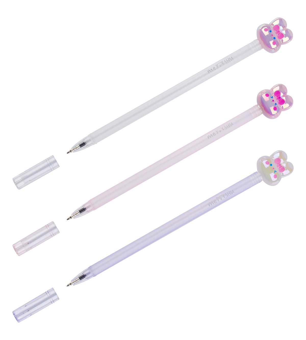Ручка гелевая автоматическая MESHU "Cute&White" синяя, 0,7мм, трехг. корпус, ассорти
