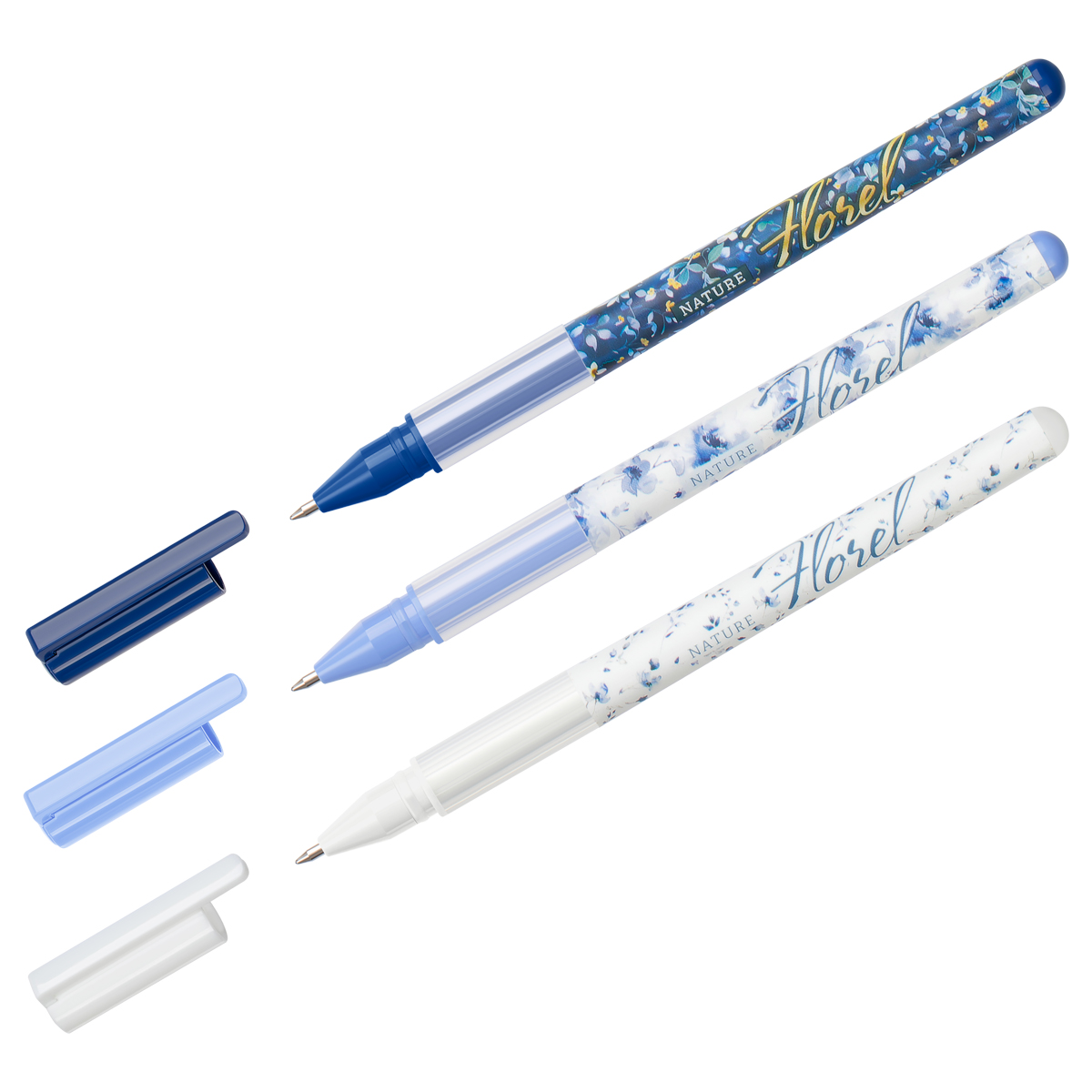 Ручка шариковая MESHU "Flowers" синяя, 0,7мм, грип, корпус ассорти