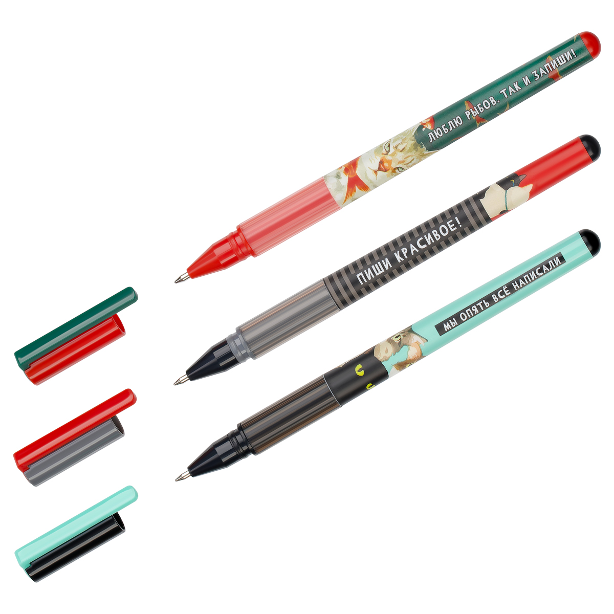 Ручка шариковая MESHU "Moody cats" синяя, 0,7мм, грип, корпус ассорти