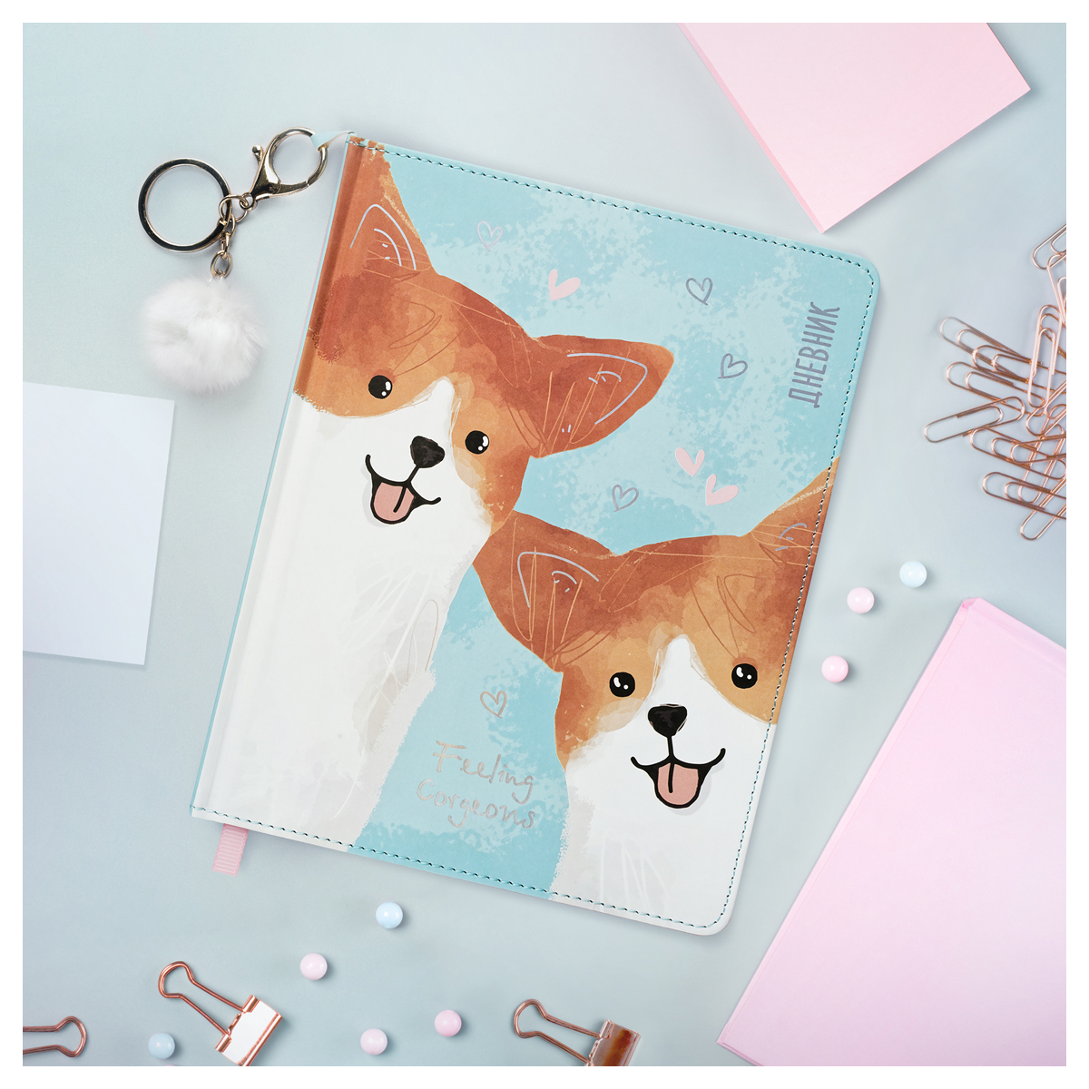 Дневник 1-11 кл. 48л. (твердый) MESHU "Funny dogs", иск. кожа, УФ-печать, брелок, тиснение фольгой, тон. блок, ляссе