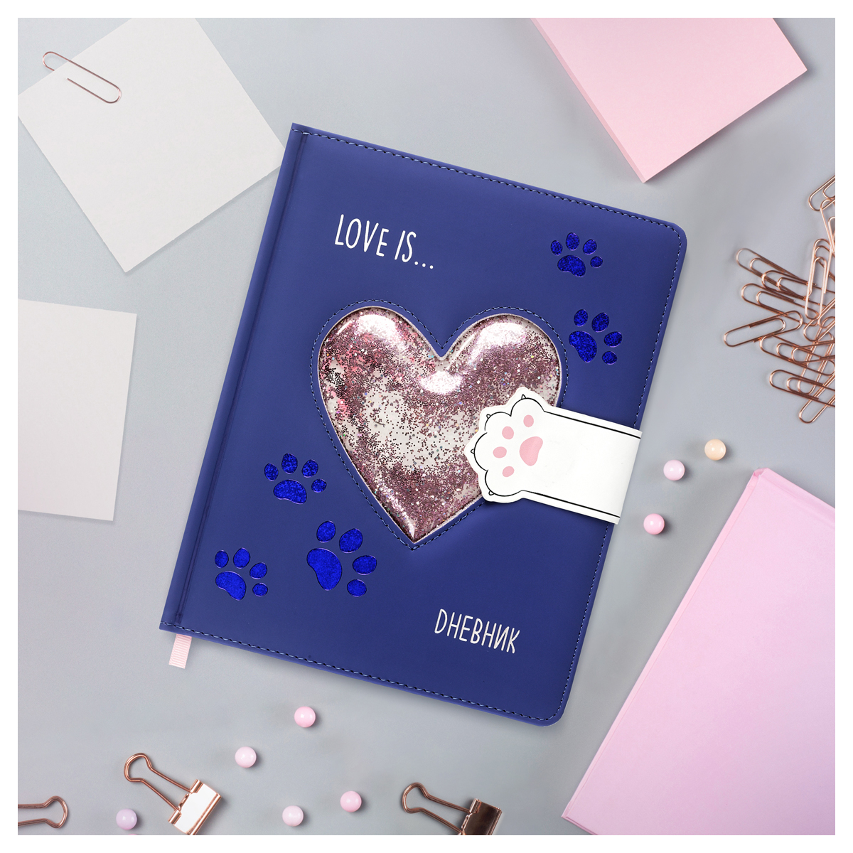 Дневник 1-11 кл. 48л. (твердый) MESHU "My love", иск. кожа, УФ-печать с глиттером, тиснение фольгой, тон. блок, ляссе