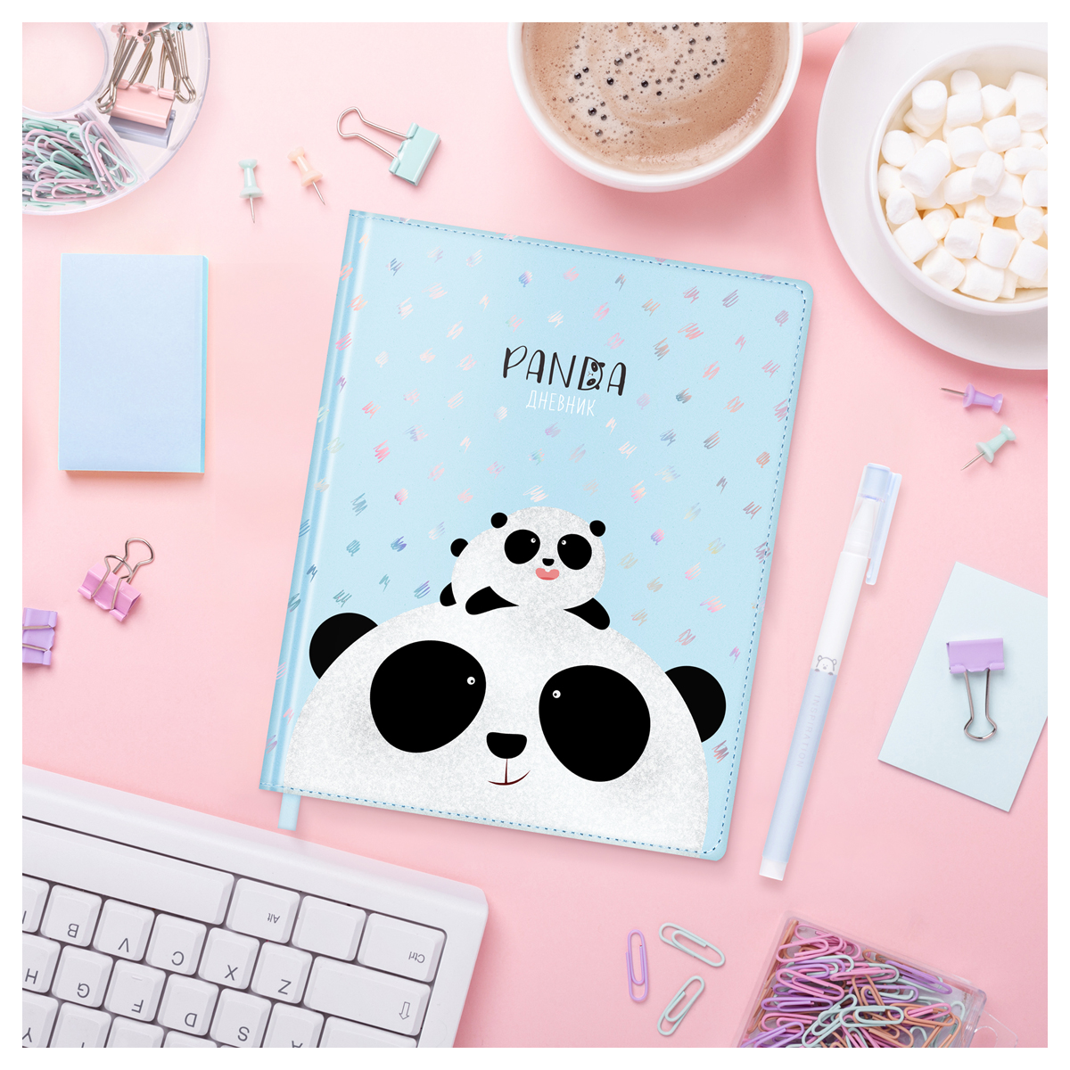 Дневник 1-11 кл. 48л. (твердый) MESHU "Funny panda", иск. кожа, УФ-печать с глиттером, тиснение фольгой, тон. блок, ляссе