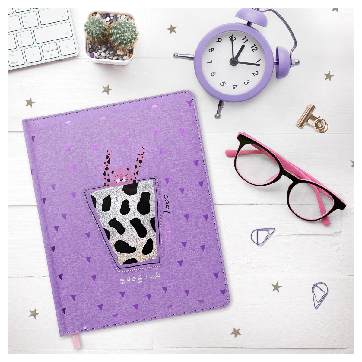 Дневник 1-11 кл. 48л. (твердый) MESHU "Cool milk", иск. кожа, УФ-печать, тиснение фольгой, аппликация, тон. блок, ляссе