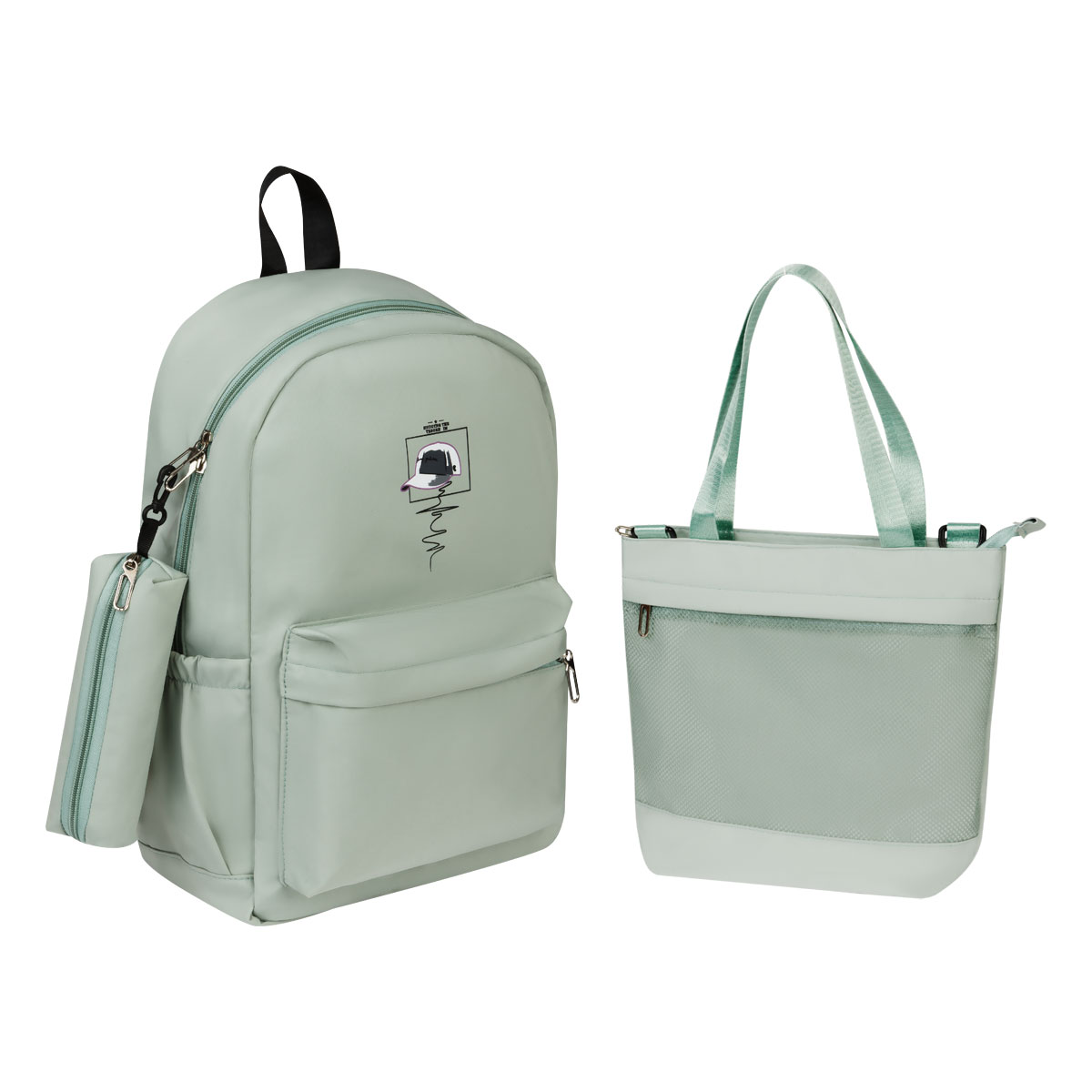 Рюкзак MESHU "Tender Mint", 43*30*13см, 1 отделение, 3 кармана, уплотн. спинка, в комплекте сумка-шоппер 33*30см, пенал 20*5*5см