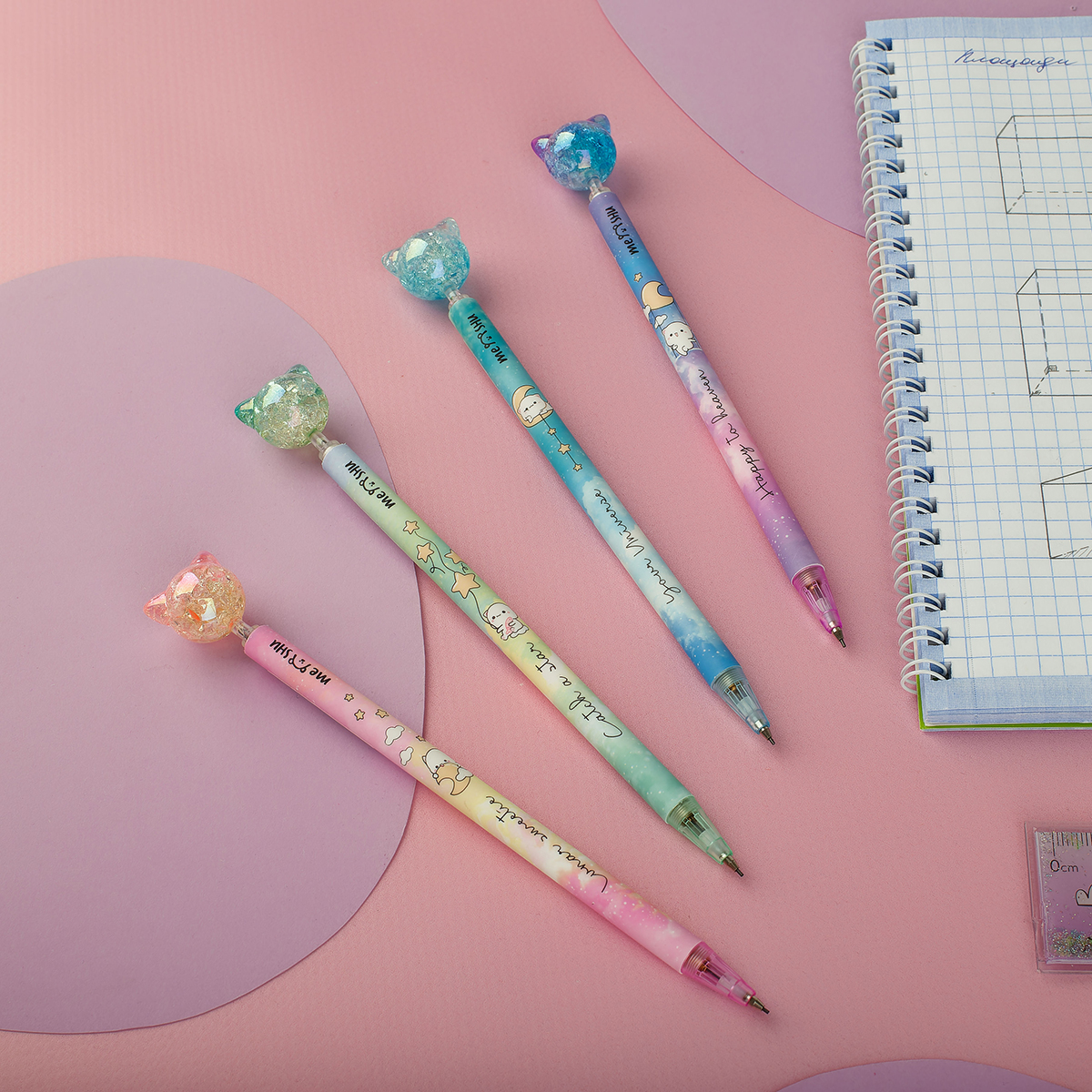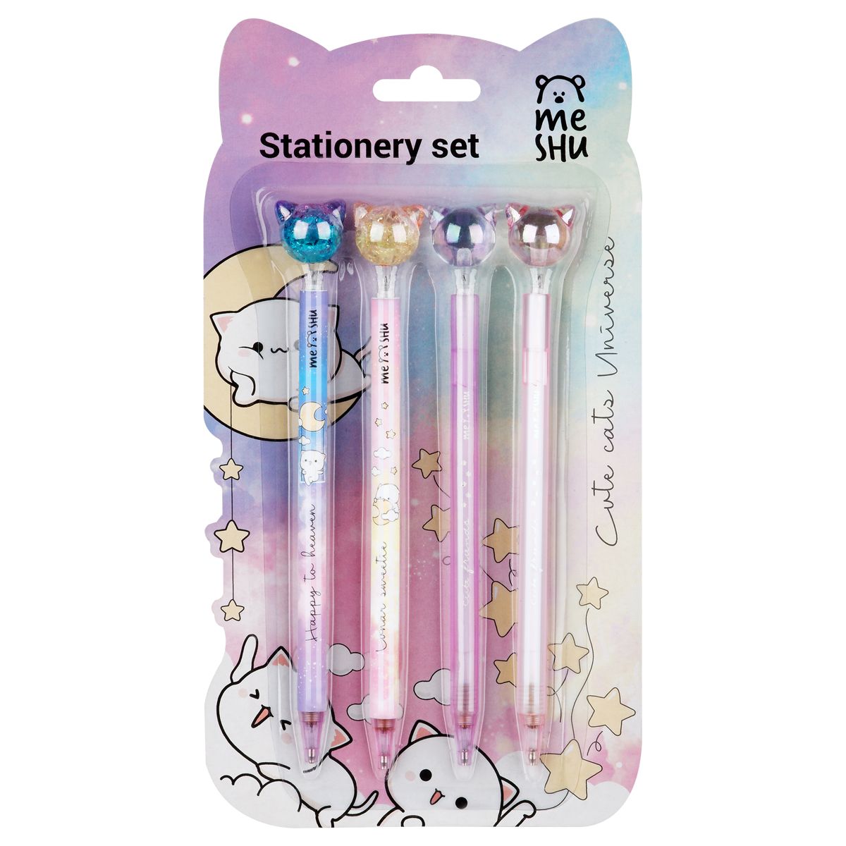 Набор карандашей механических MESHU "Cute Cats", 4шт., печать на корпусе, 0,7мм, софт-тач, ассорти, с топпером, блистер