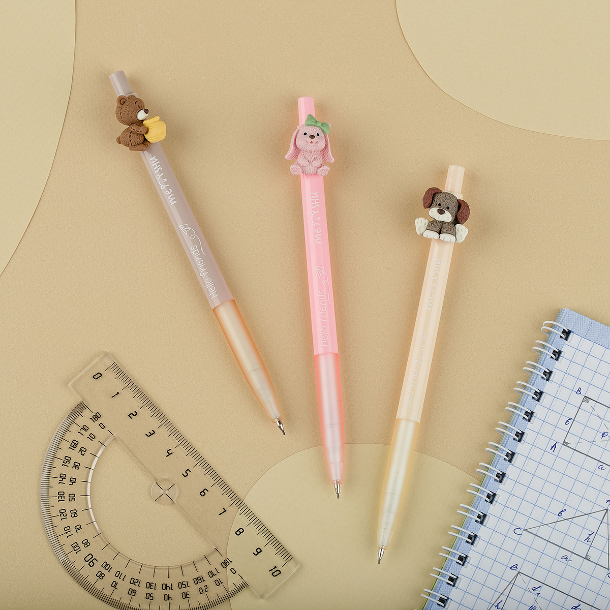 Карандаш механический MESHU "Funny friends", печать на корпусе, 0,7мм, софт-тач, ассорти, с топпером