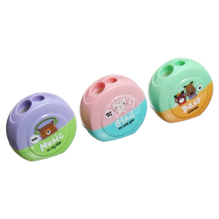 Точилка пластиковая MESHU "Best friends", 2 отверстия, ассорти