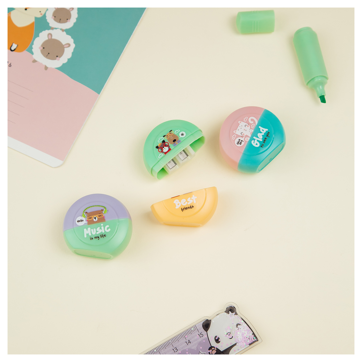 Точилка пластиковая MESHU "Best friends", 2 отверстия, МИКС