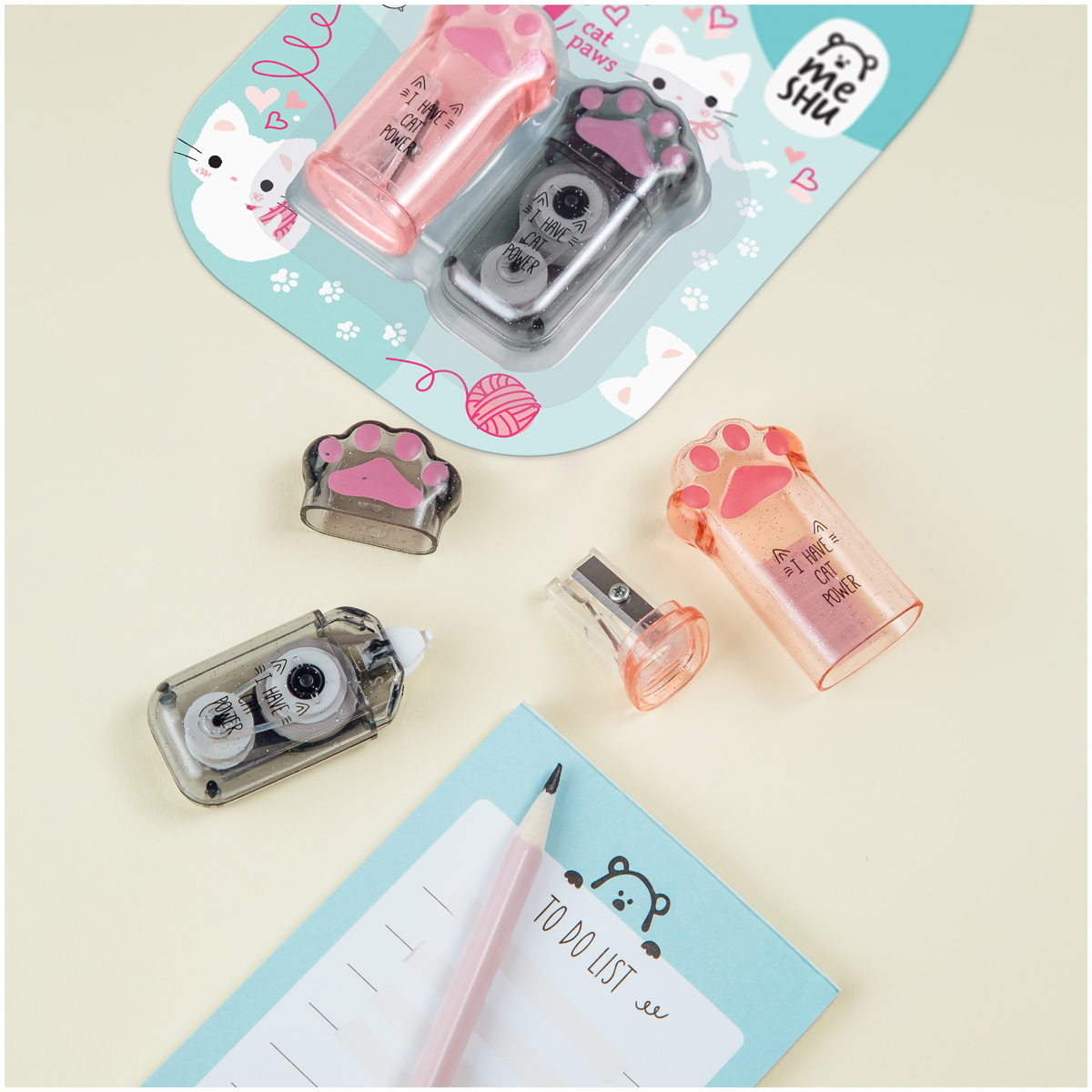 Набор канцелярских принадлежностей MESHU "Say Meow", 2 предмета, блистер