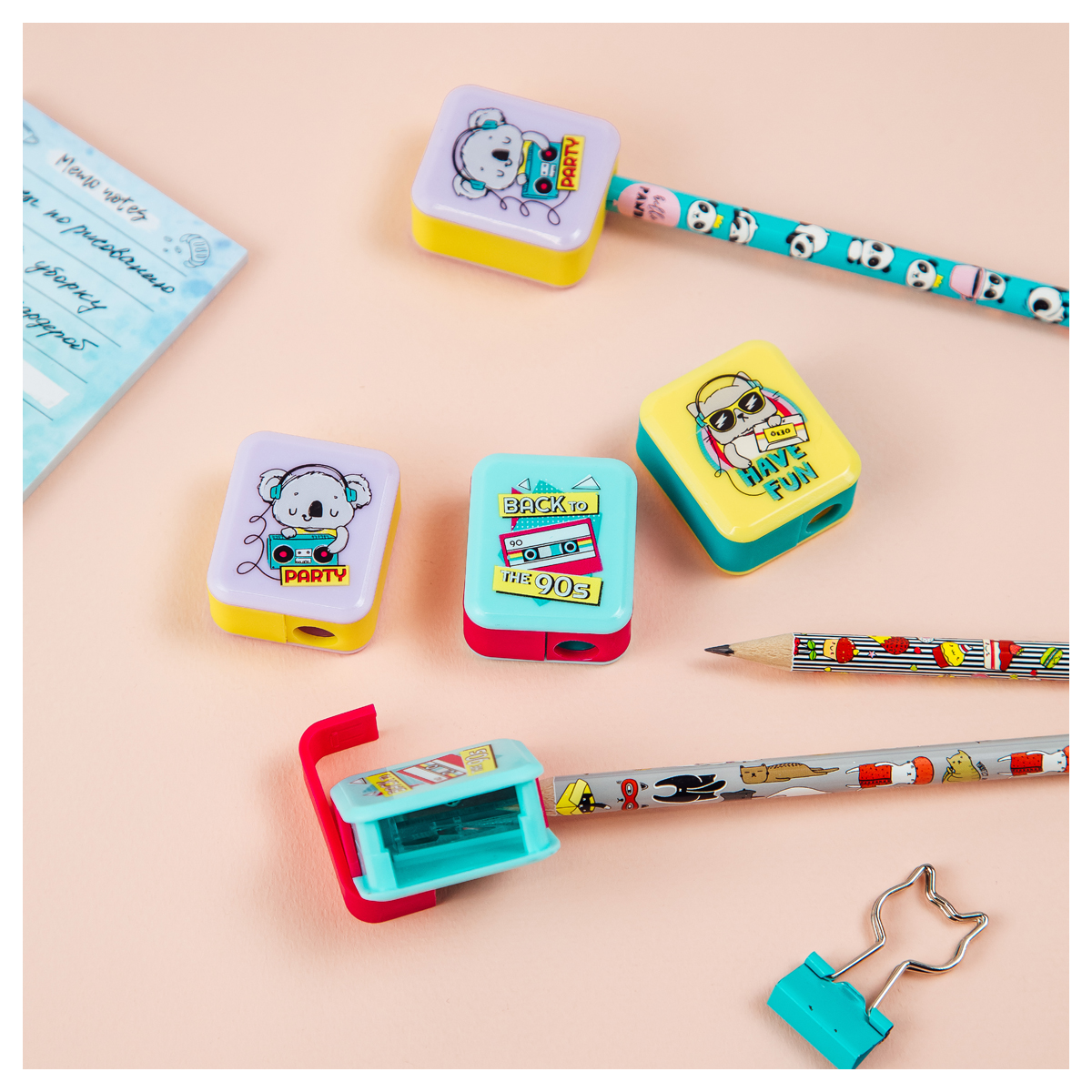 Точилка пластиковая MESHU "90s party" 1 отверстие, ассорти