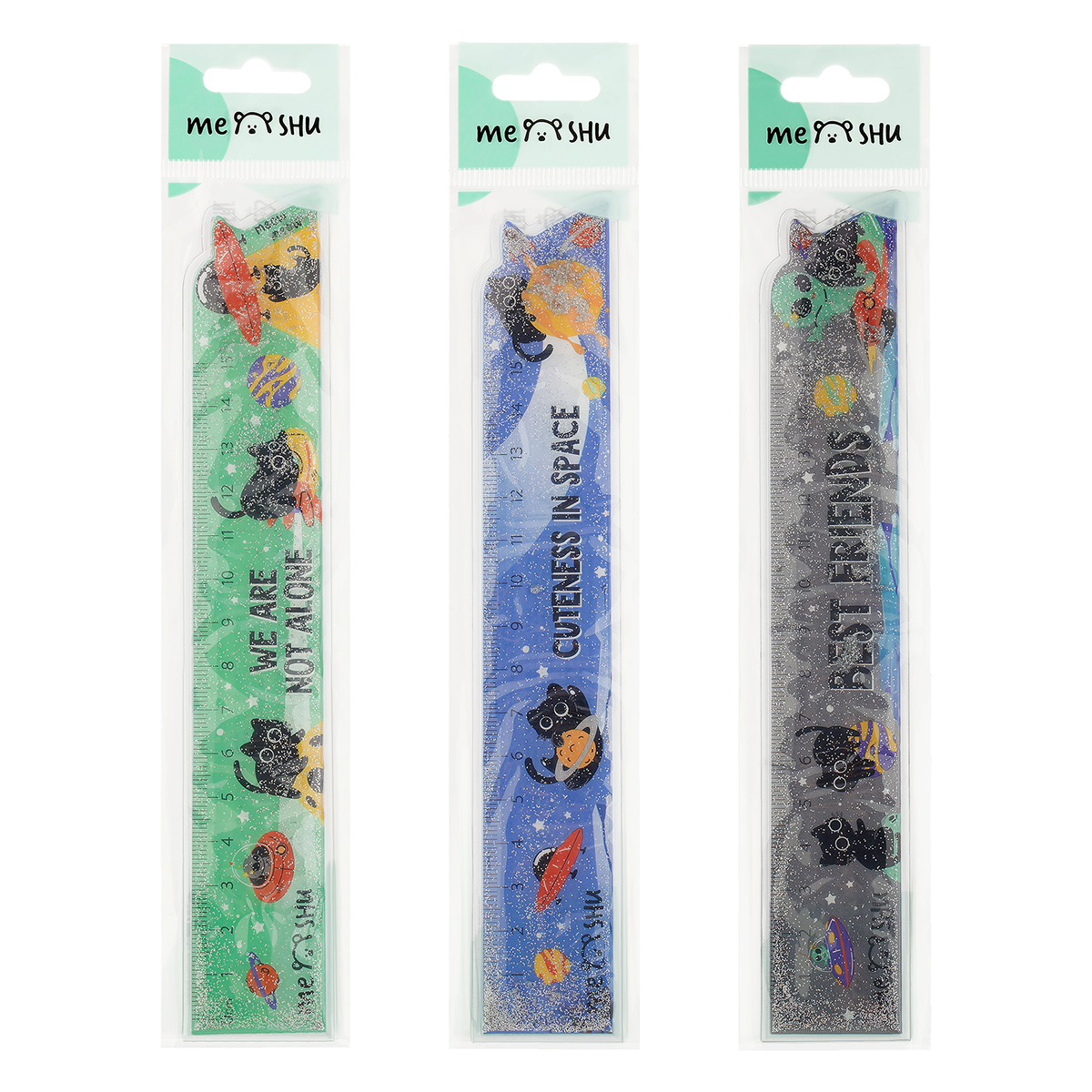 Линейка 15см MESHU "Space Cat" ПВХ с блестками, ассорти, европодвес