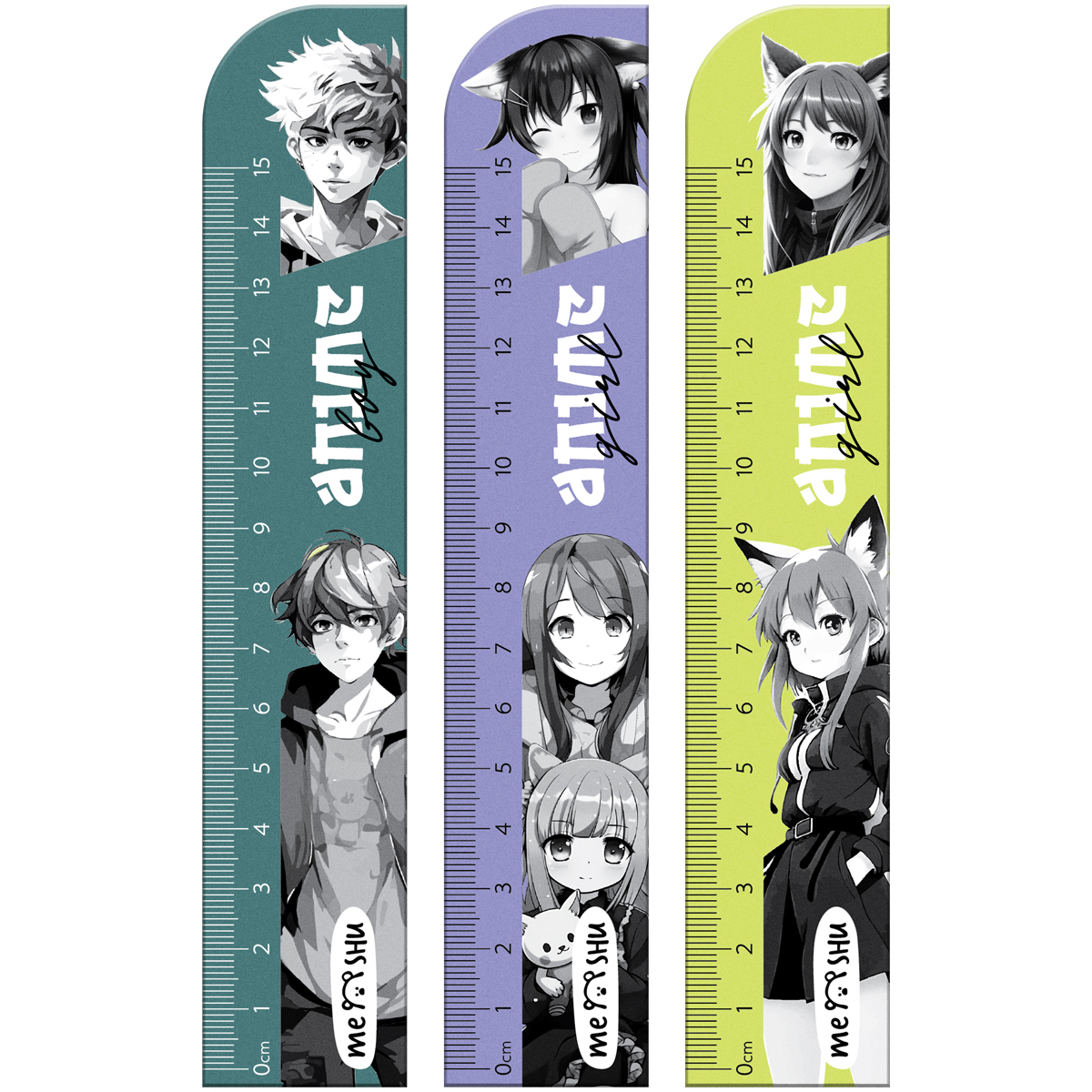 Линейка 15см MESHU "Anime", деревянная, ассорти, европодвес
