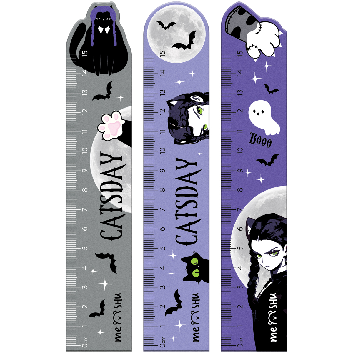Линейка 15см MESHU "Cute Cats" ПВХ с блестками, ассорти, европодвес