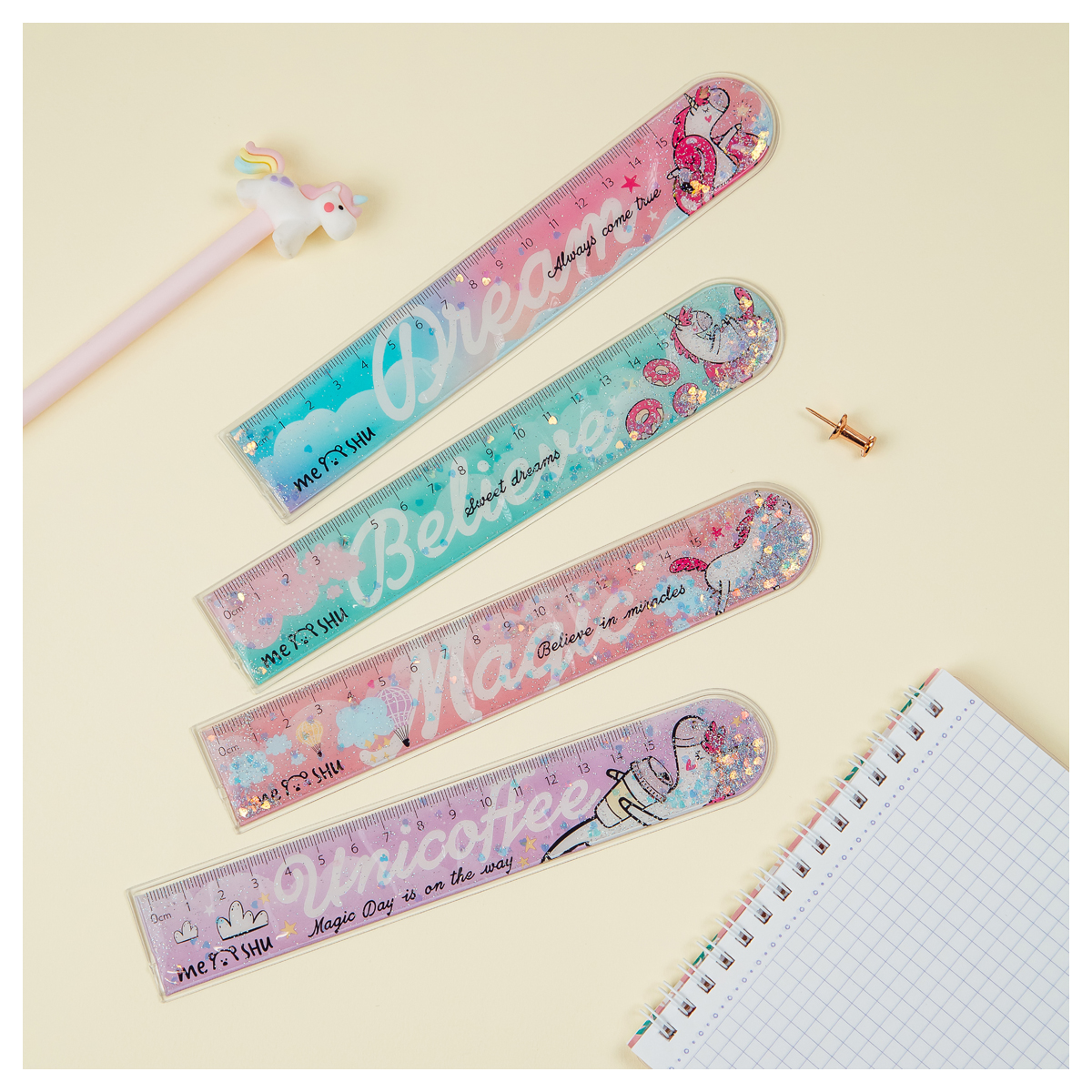 Линейка 15см MESHU "Unicorn rest", ПВХ с блестками, ассорти, европодвес