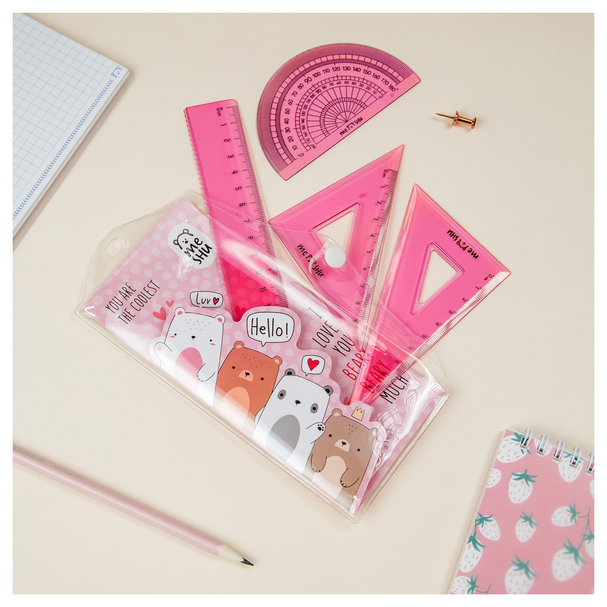 Набор чертежный "Beary beary" MESHU (треуг. 2шт., линейка 15см, транспортир), прозр, ПВХ чехол