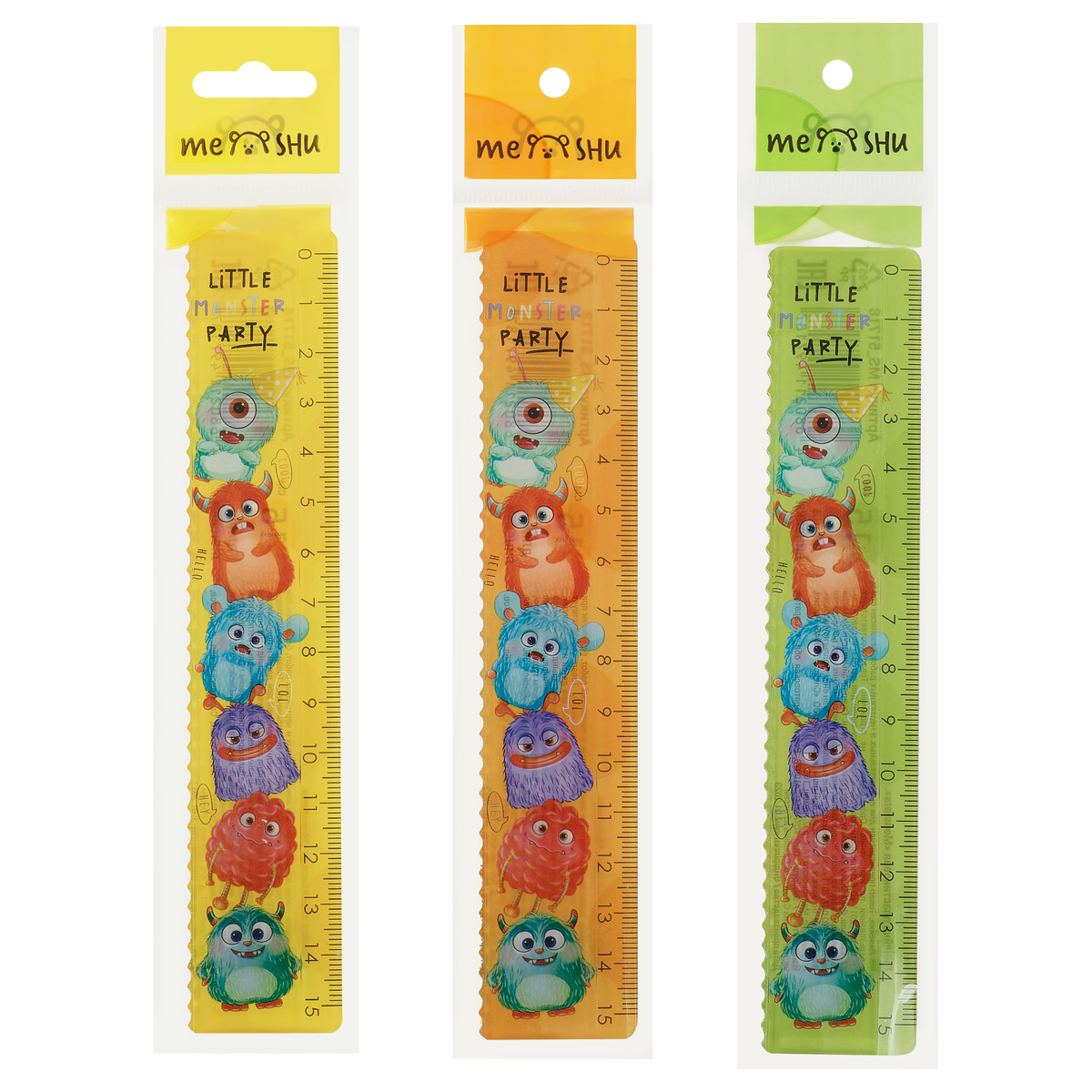 Линейка 15см MESHU "Monsters", пластиковая, с волнистым краем, ассорти