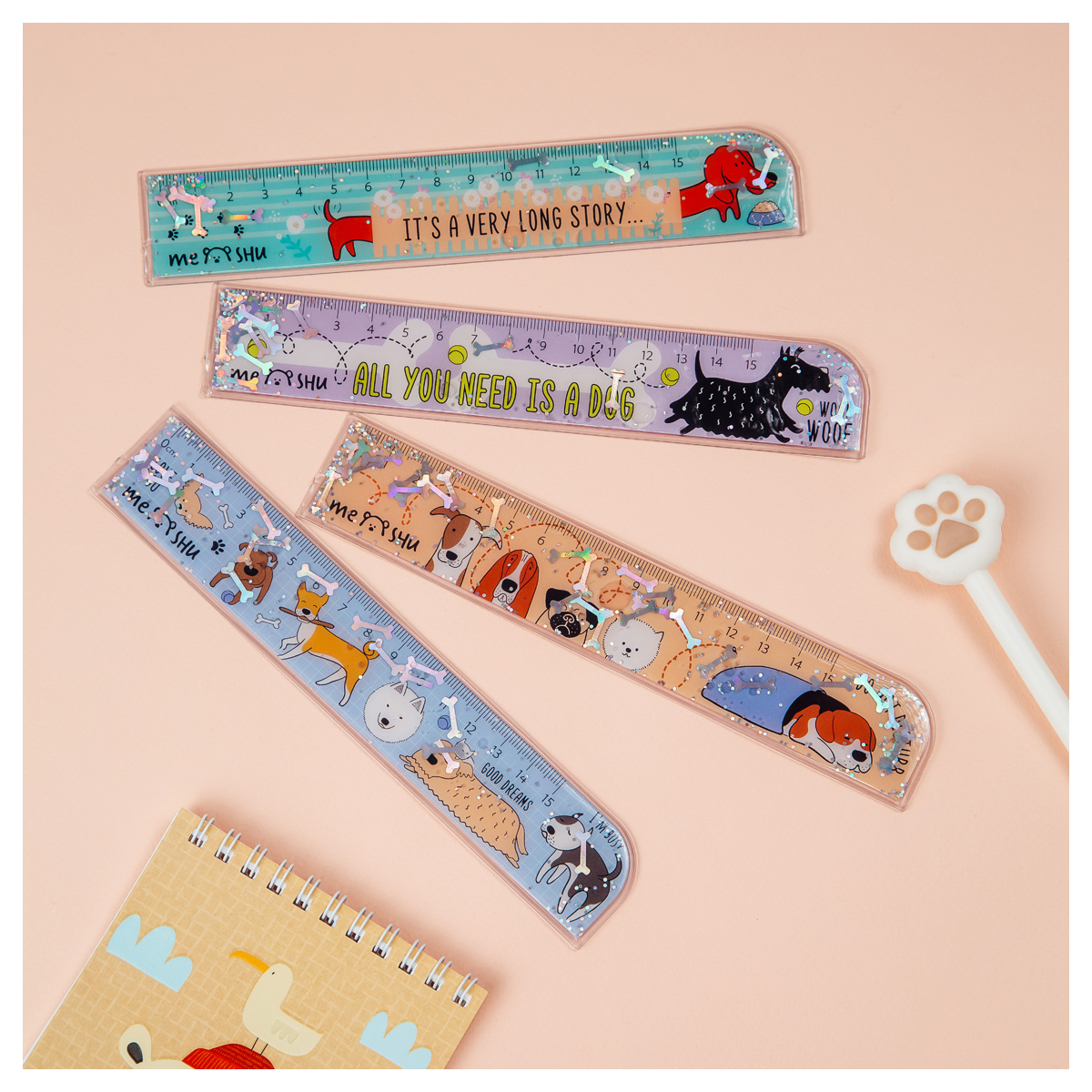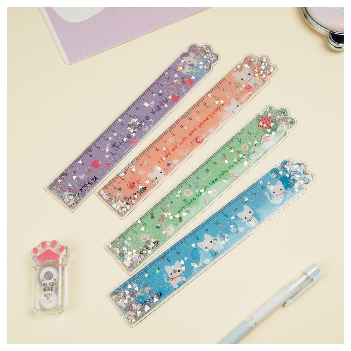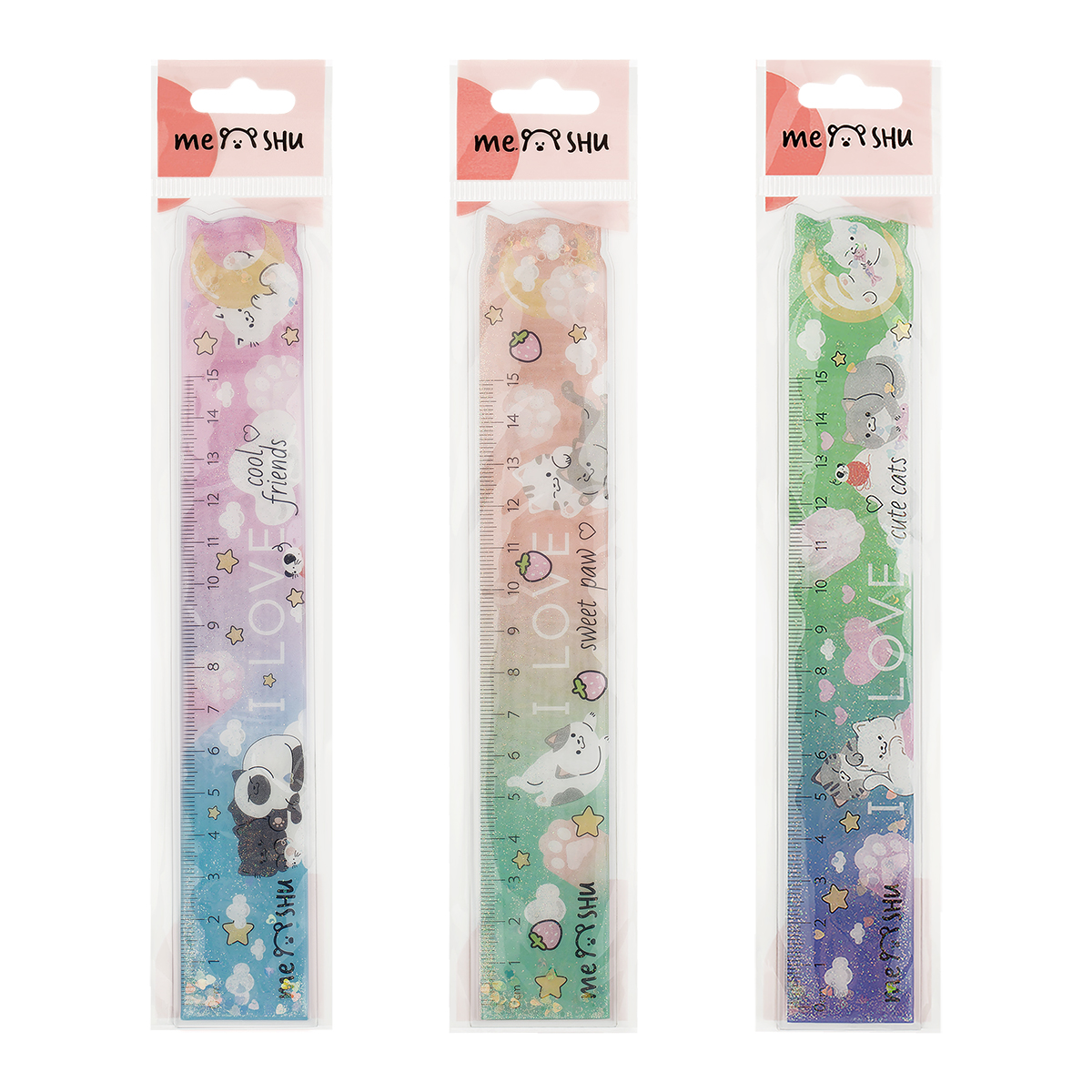 Линейка 15см MESHU "Paw", пластиковая, тонированная, с блестками, европодвес
