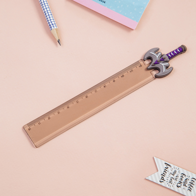 Линейка с топпером 12см MESHU "Grey sword", пластиковая, европодвес
