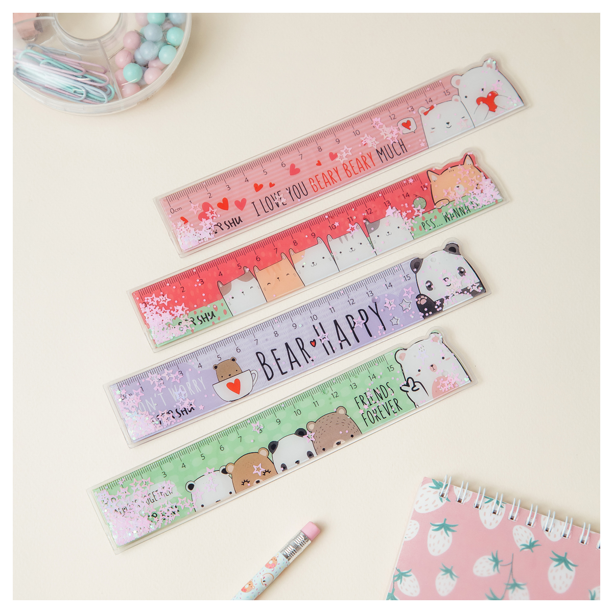 Линейка 15см MESHU "Beary beary", ПВХ с блестками, ассорти, европодвес