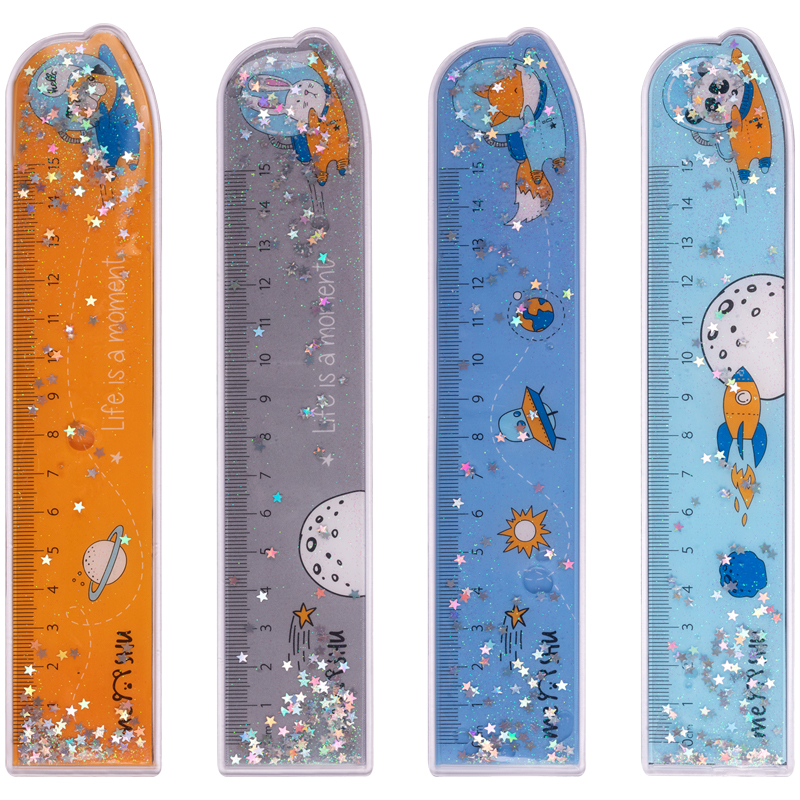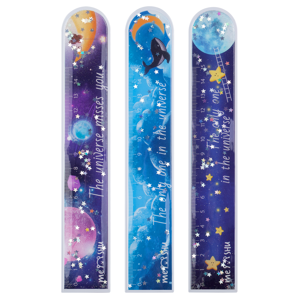 Линейка 15см MESHU "Universe" ПВХ с блестками, ассорти, европодвес