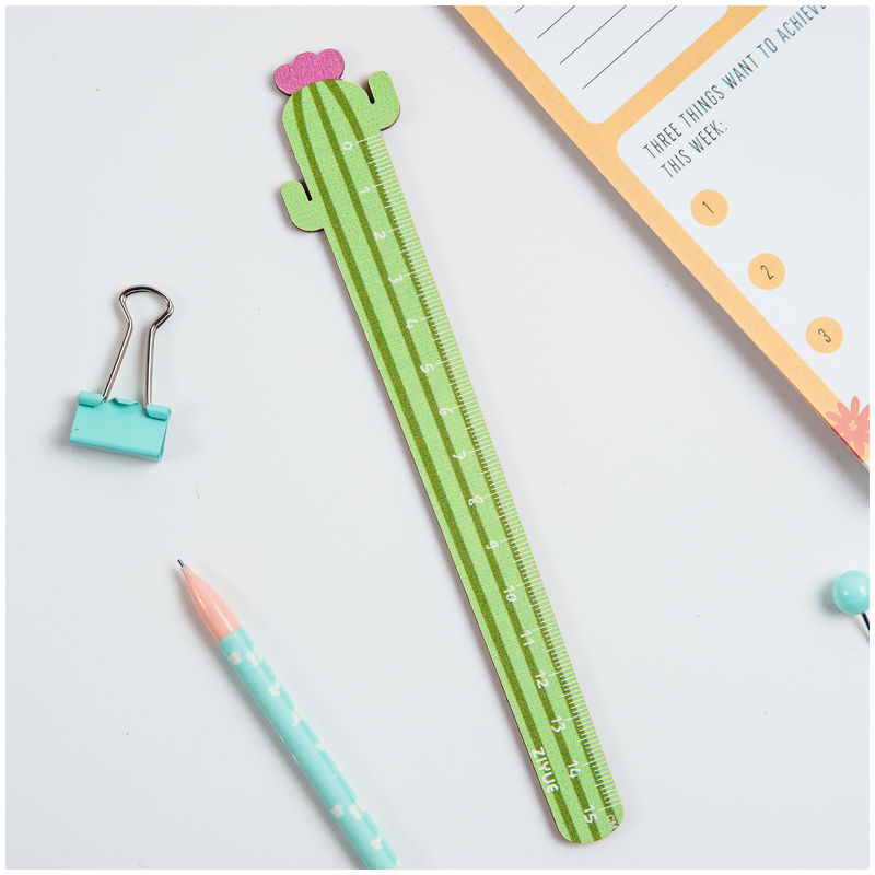 Линейка 15см MESHU "Cactus", дерево, ассорти, европодвес