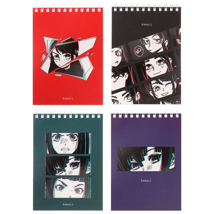 Блокнот А6 60 листов в клетку MESHU "Kawaii", матовая ламинация, выборочный УФ-лак