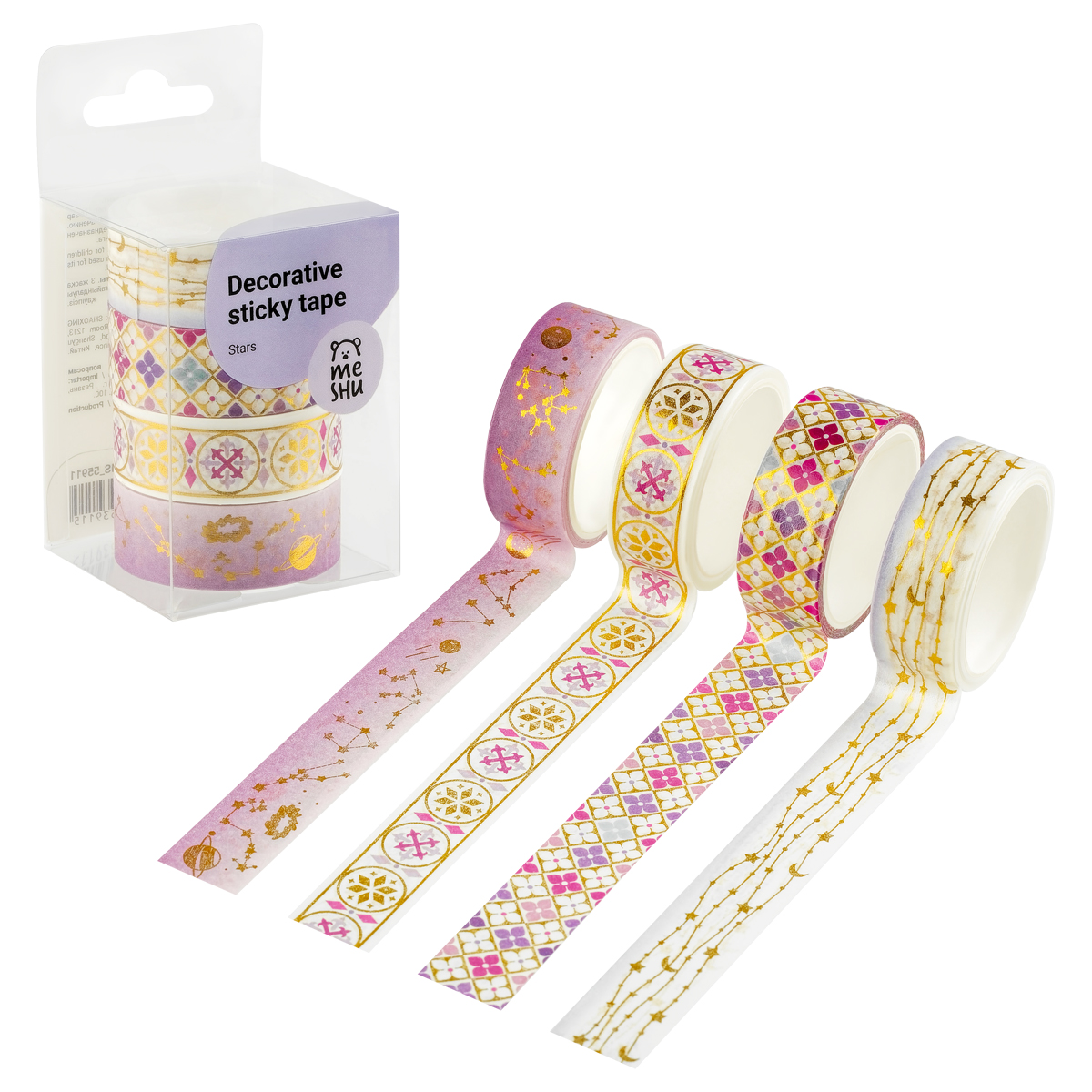 Набор клейких декоративных лент MESHU "Stars", 4шт