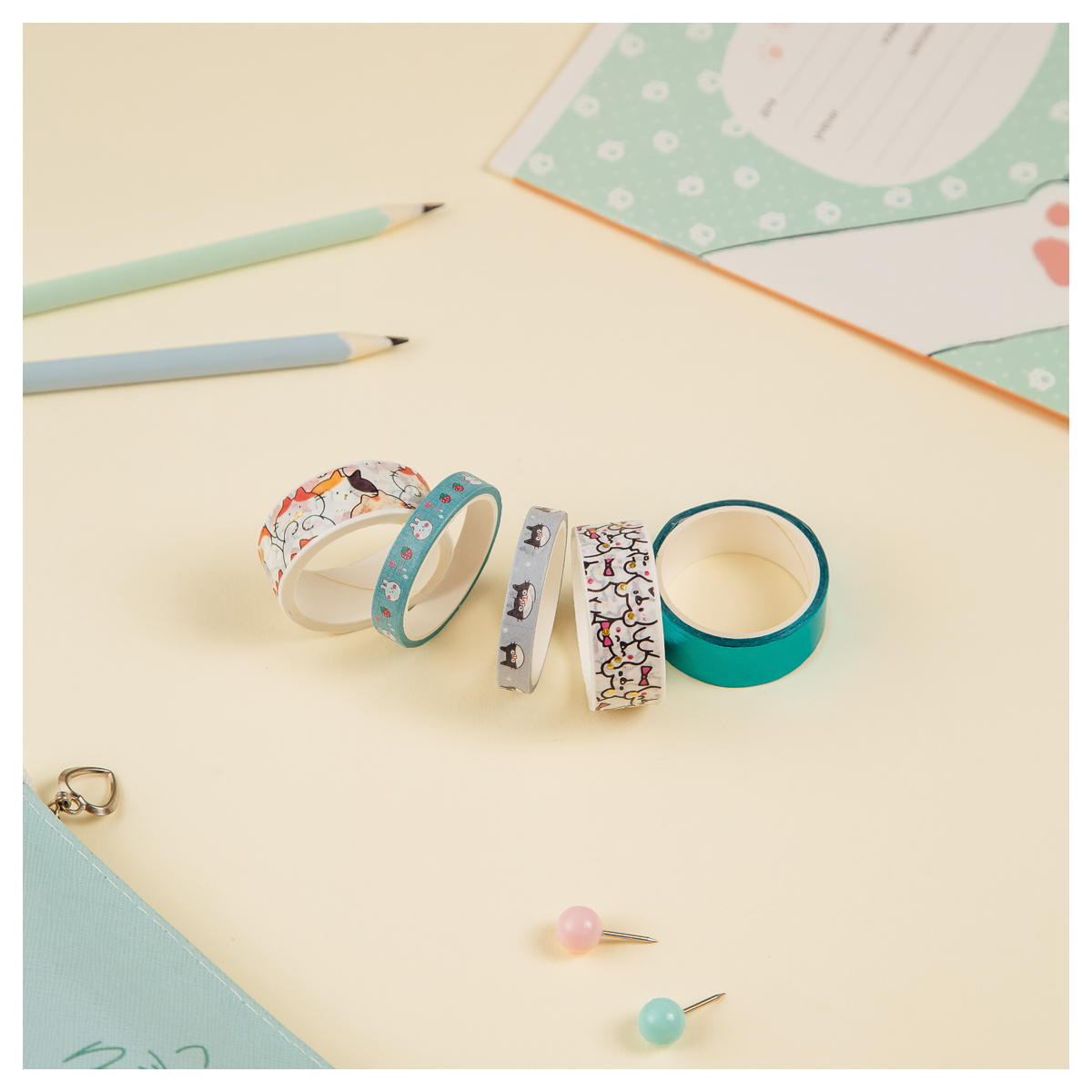 Набор клейких декоративных лент MESHU "Bubble animals", 5шт