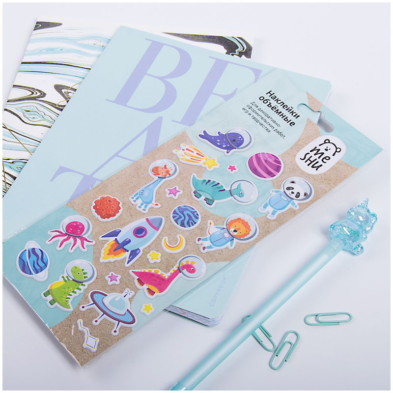 Наклейки объемные MESHU "Space friends", 10*24см, 22 наклейки, инд. уп., европодвес