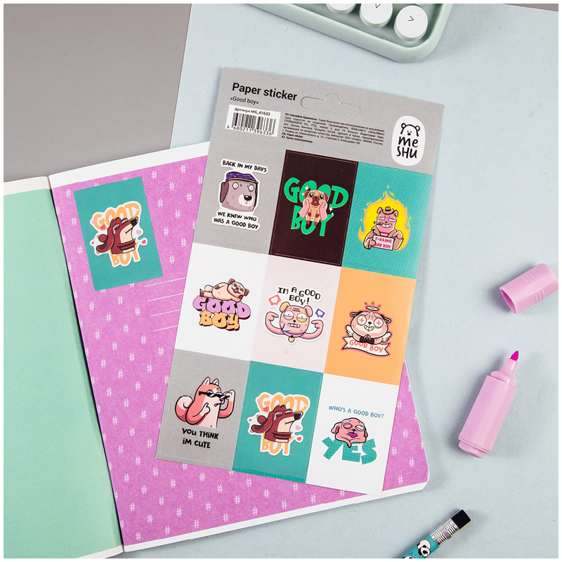 Наклейки бумажные MESHU "Good boy", 12*21см, 9 наклеек, европодвес