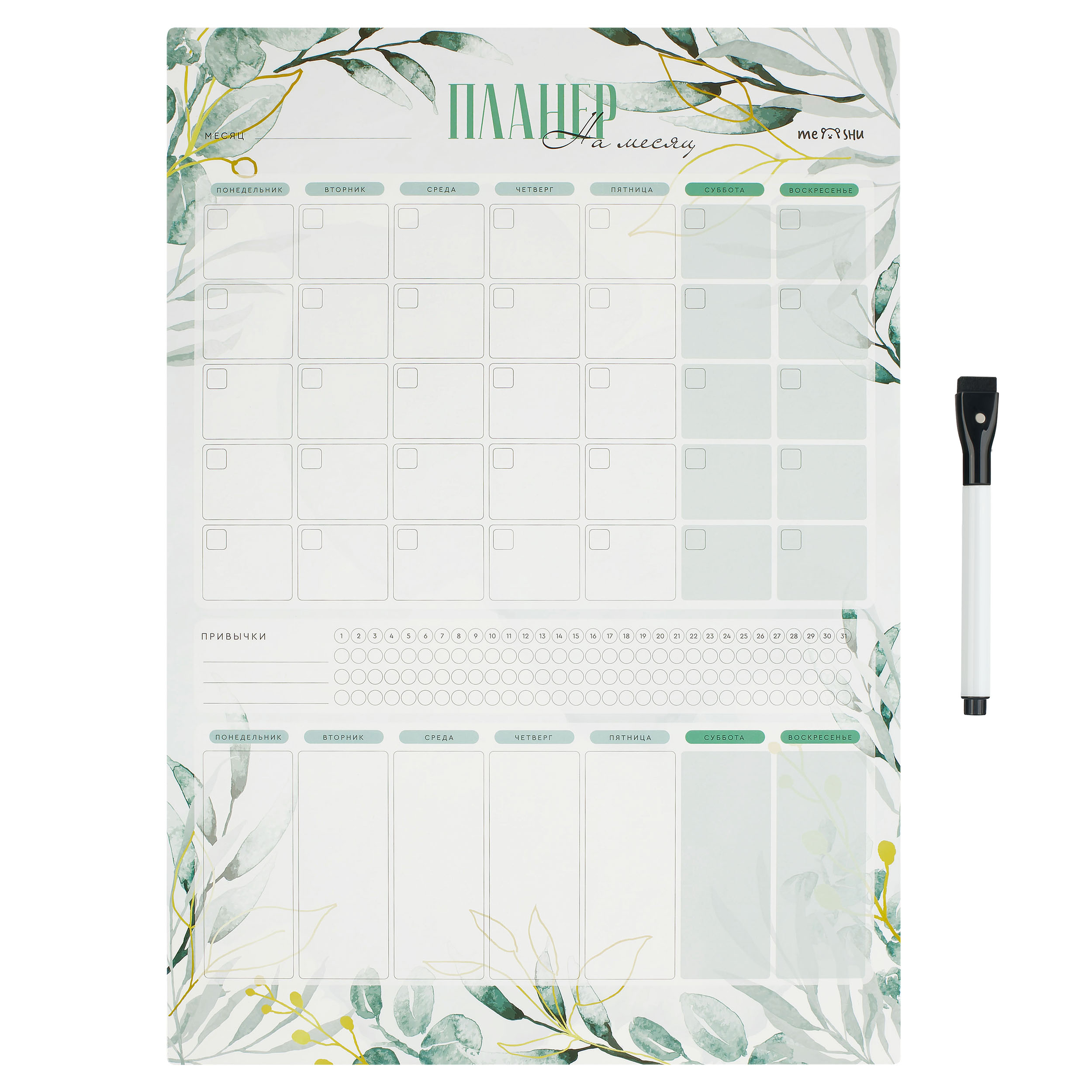 Магнитный планер на месяц MESHU А4, "Avocado", с маркером