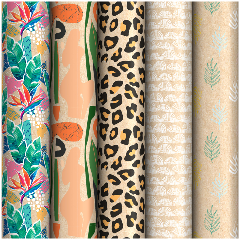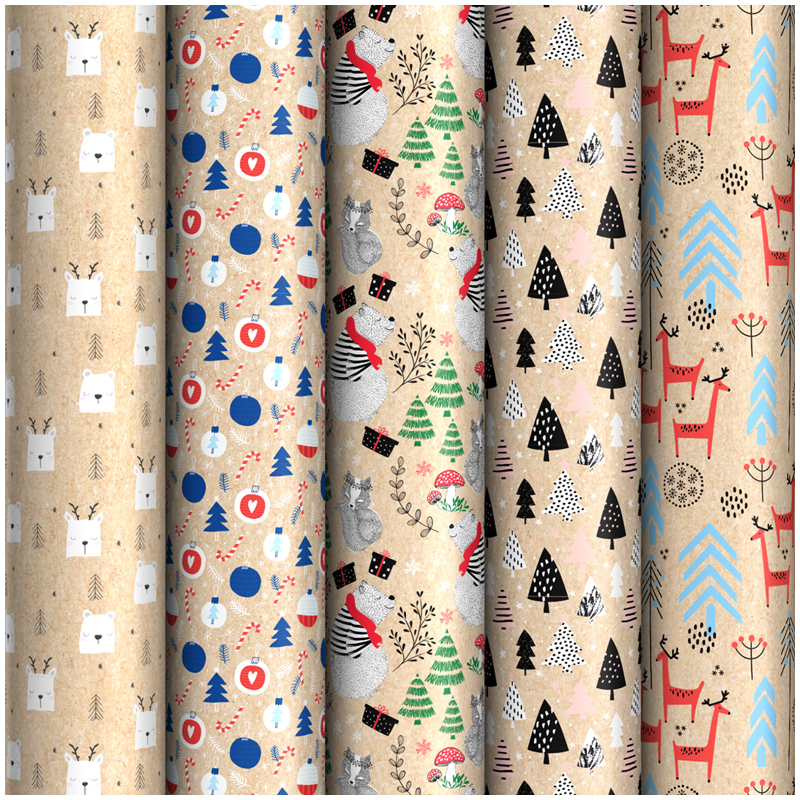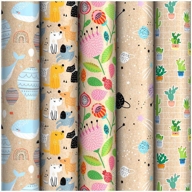 Упаковочная бумага крафт 70*100см, MESHU "Trendy", 70г/м2, ассорти 5 дизайнов