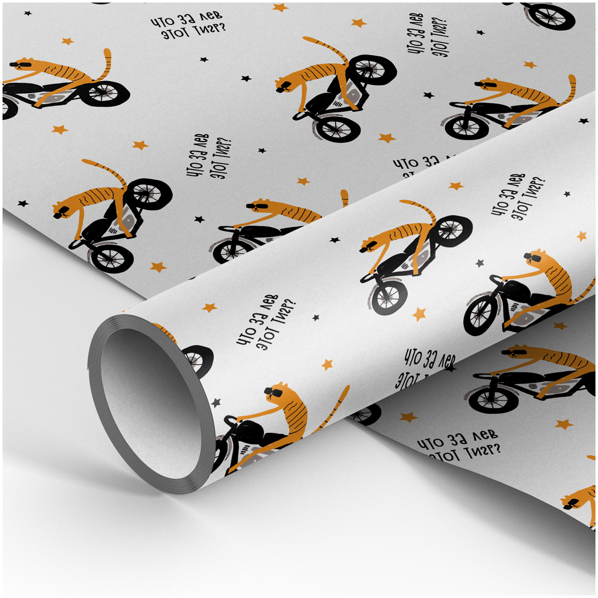 Упаковочная бумага белый крафт 70*100см, MESHU "Что за лев этот тигр", 70г/м2