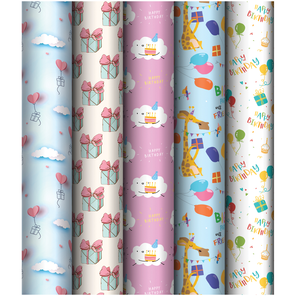 Упаковочная бумага глянц. 70*100см, MESHU "Cute", 90г/м2, ассорти 5 дизайнов